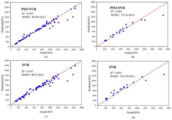- The PSO-SVR model achieved excellent accuracy, with an of 0.95 and the lowest RMSE (89.38 kN) among all tested models, making it highly effective for shear capacity predictions.