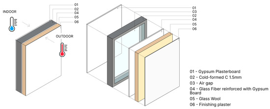 The wall panel used is a commercial LSF solution with the composition described in Figure 1. The thermophysical properties of the materials and the dimensions of the different layers are detailed in Table 1.