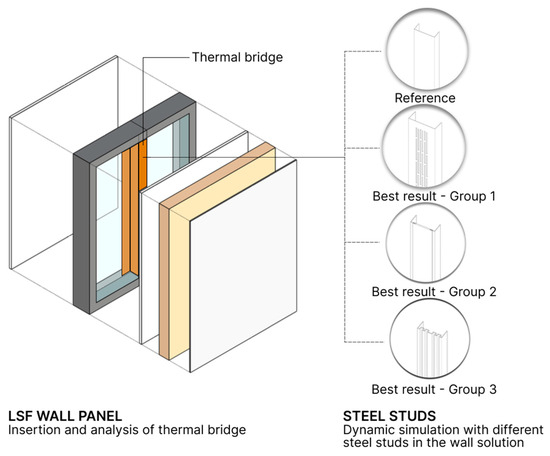 While various methods to mitigate thermal bridging in LSF systems have been explored, this study focuses on addressing specific challenges in the thermal performance of steel studs. Through a detailed parametric investigation, three optimization approaches were analyzed: (i) design of innovative slot patterns to extend the heat flux path, (ii) integrating less-conductive materials into the web to mitigate thermal bridges, and (iii) altering profile geometry to improve thermal resistance. These strategies were systematically evaluated to determine their impact on heat flux, with the aim of identifying the most effective solutions for enhancing the thermal performance of LSF wall panels. Moreover, the impact of an external insulation layer with varying thicknesses was also evaluated.