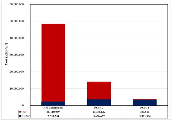 To evaluate the associated costs in various scenarios, including both operation cost (OC), investment cost (IC), and salvage cost (SC), the following equation was adopted [30]: total cost = OC + IC − SC, where investment cost in this work included the cost of model construction and materials used in different scenarios (Appendix B).