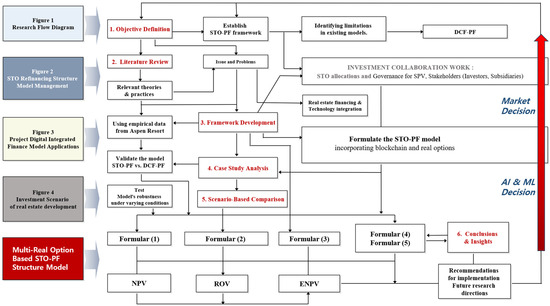 The subsequent stage is the formalization of the STO-PF framework. This model integrates blockchain-based tokenization and a multi-step, real-options valuation approach, thereby providing enhanced flexibility, transparency, and risk diversification. The binomial lattice model is employed to quantify the flexibility and strategic value introduced by multi-stage real options [25]. This framework provides developers and investors with the ability to navigate market uncertainty and optimize decision-making through the use of adaptive tools. The validation of this approach is demonstrated through a case study of the Aspen Resort project. A comparative analysis is conducted using empirical data to evaluate the existing DCF-based method and the STO-PF model [26]. The analysis focuses on key indicators such as net present value (NPV), real-option value (ROV), and extended net present value (ENPV). This analysis illustrates the practical advantages of the STO-PF model in risk management, liquidity enhancement, and strategic investment support. Furthermore, scenario-based analysis assesses the model’s resilience to diverse market circumstances, including volatility and technical risk. This step is designed to illustrate the malleability of the STO-PF framework, demonstrating its capacity to offer strategic solutions in evolving contexts. The study emphasizes the crucial importance of adaptability in ensuring that financial strategies remain aligned with the evolving realities of the market.