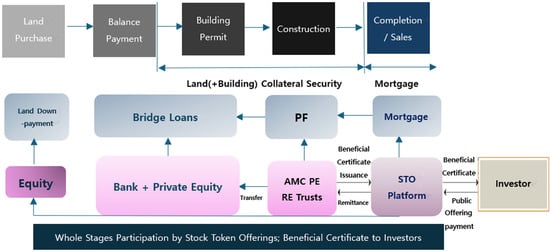 The STO-PF model serves to bridge the gap between traditional real estate finance and blockchain-based tokenization, thereby facilitating the democratization of investment access for both institutional and individual investors. The financing process commences with the developer obtaining equity through internal or private funds to cover early-stage investments, such as land acquisition. During the transition to the construction phase, a bridge loan provides the requisite short-term liquidity, with the project assets serving as collateral for future financing. As the project advances, a security token offering (STO) is made available to the public, representing fractional ownership of the project. The tokens offered via the blockchain platform provide investors with a guaranteed share of future cash flows, such as rental income or sales proceeds. The tokenization process distributes risk across a diverse investor base, reducing reliance on large institutional lenders and mitigating developers’ financial exposure.