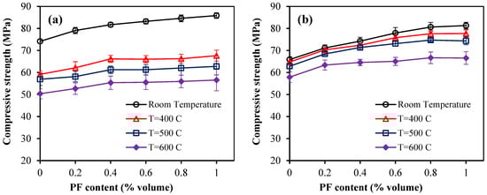 The addition of 1% polypropylene and glass fibers to HSC without diatomaceous earth enhanced the compressive strength by 15.8% and 18.0%. Meanwhile, the increase in compressive strength for HSC with diatomaceous earth was 23.4% and 32.6%. The higher compressive strength recorded through the administration of glass fiber was related to the higher tensile strength possessed by the material compared to polypropylene fiber, which led to better ability in delaying and preventing crack propagation. HSC containing CDE reinforced with polypropylene fiber has a compressive strength about ten times greater than ceramic slurry compacts reinforced with natural fibers [77].