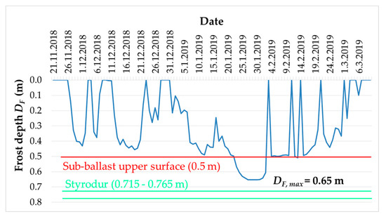 - The application of thermal insulation material in the sub-ballast layers provides a significant thermal resistance to frost penetration into the subgrade but results in greater freezing of the overlying layers of the railway track structure (layers located above the thermal insulation material);