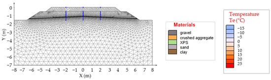 - Complete protection of the subgrade surface against freezing across the entire width of the active traffic load zone can be achieved by designing various thicknesses of XPS, as determined through numerical modelling (see Table 4);