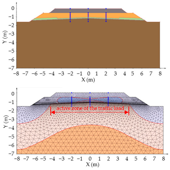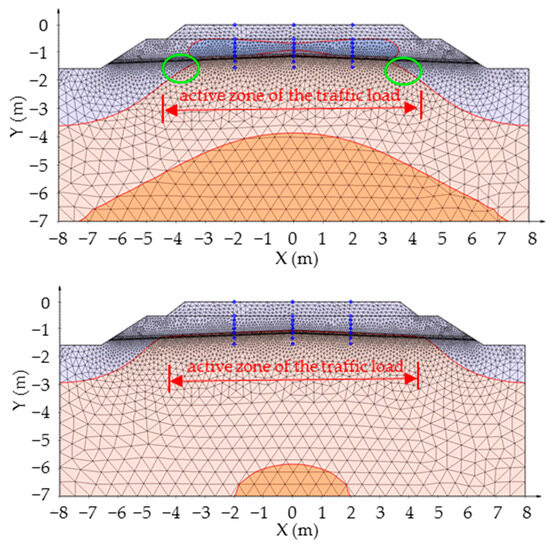 3.2. Numerical Modelling—Structure with Extruded Polystyrene (XPS) Layer in the Sub-Ballast Layers