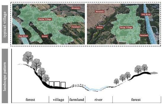 Landscape pattern of the river valley-type traditional villages.