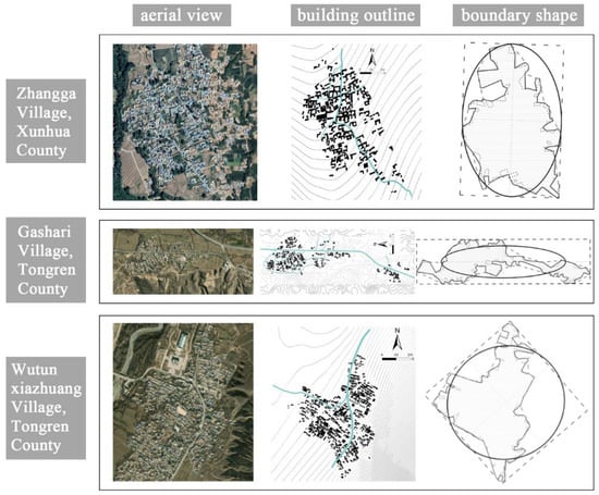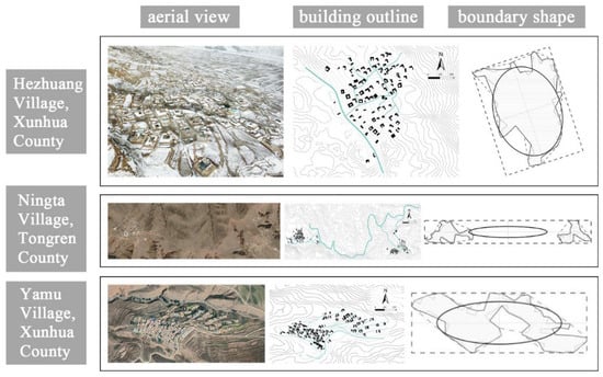 This study examines the spatial morphology of traditional villages from three perspectives: landscape patterns, boundary morphology, and street and alley layouts. Specifically, the data utilized for analyzing the landscape pattern and the morphology of streets and alleys are derived from high-resolution photographs captured by lightweight unmanned aerial vehicles during field surveys. The village boundary, map base of buildings, public spaces, and road axis data used to calculate the boundary shape index are derived from remote sensing images, Chinese traditional village archives, and the drawings in the Traditional Village Protection and Development Plan approved by relevant local governments. AutoCAD 2014 software was used to digitize and visualize the outer contour lines of buildings and public spaces as well as the street network and village boundary.