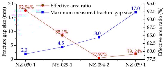 The effective area ratios are compared with the measured fracture gap size between the suspender anchorage and the connecting sleeve, as shown in Figure 6.