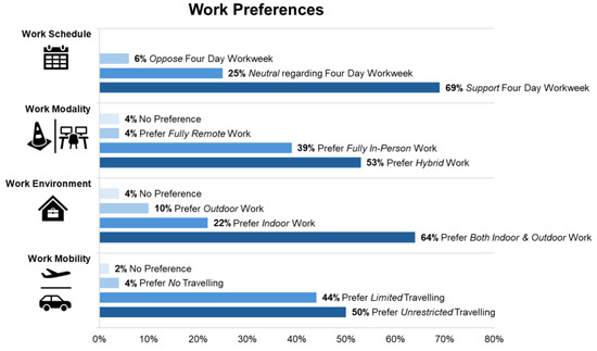 To attract and retain Gen Z talent in the construction industry, and understand the extent of macho culture on the industry, it becomes critical to understand the values and needs that Gen Z students seek in organizations when entering the market [12,45]. Like any previous generation, Gen Z has varying attitudes, needs, and preferences regarding employment, which will influence the strategies employers use to ensure a strong “person–career fit” [12,17]. By understanding these needs, organizations can prioritize and implement human resource and management strategies that meet Gen Z’s needs and successfully retain them to foster the industry’s growth and sustainability [12,46].