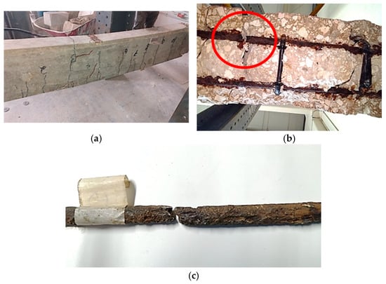 - More studies where the electrochemical parameters, corrosion cracking, cross-sectional area losses of the LTR, and strength losses of beams with corrosion are evaluated together are required. Variables such as the bar diameter, free cover concrete of the LTR, and properties of concrete, among others, must be considered.