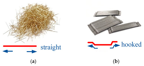 Different types of steel fibers. (a) Straight steel fibers. (b) Hooked-end steel fibers.