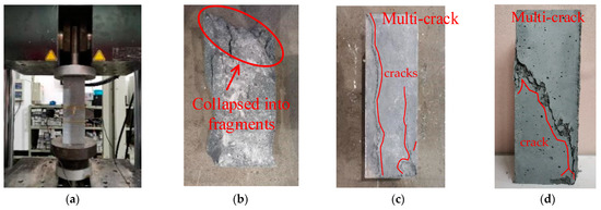 The compressive toughness was investigated using prismatic specimens with the size of 100 × 100 × 300 mm and 4 specimens per group. An INSTRON-8805 electro-hydraulic servo fatigue testing machine was used for loading. An NCS YYU-5/50 extensometer was used for the strain measuring, which was installed in the middle of the specimen. The test was performed under a constant displacement rate of 0.2 mm/min.