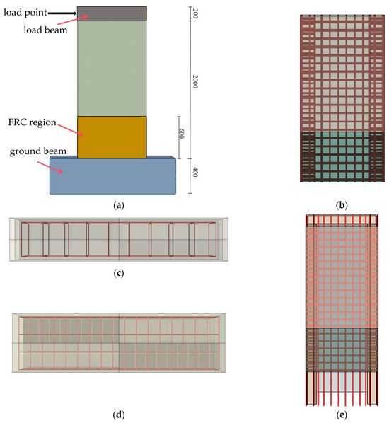 In addition, because the plastic hinge area of the specimen should be replaced with FRC concrete, the replacement height is 600 mm, so the wall should be cut, and the overall model of the specimen is shown in Figure 3.