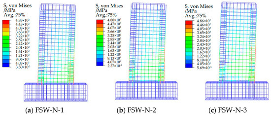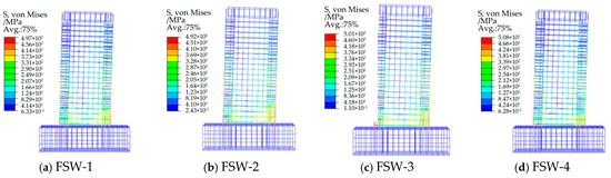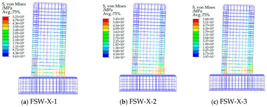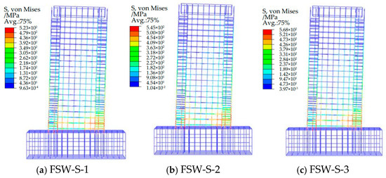 Figure 20. Reinforcement cage S, von Mises cloud plot of the FSW-X series shear wall.