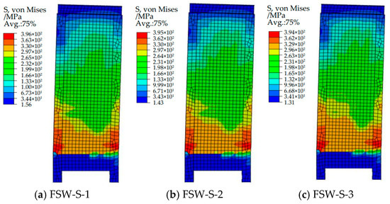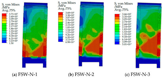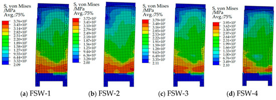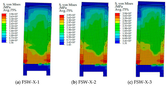 Figure 21. Steel plate and profile S, von Mises cloud plot of the FSW-X series shear wall.