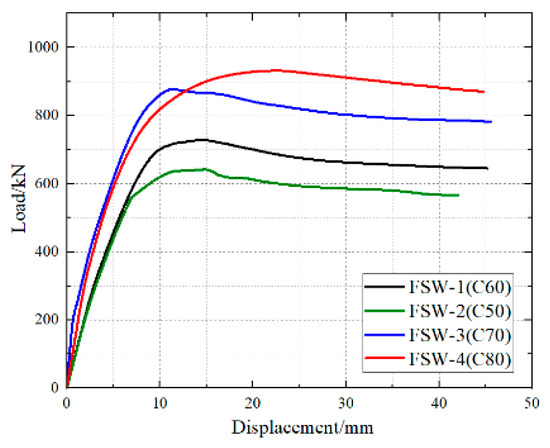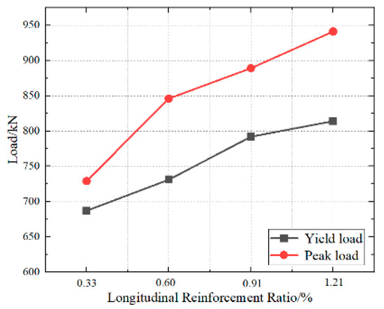 Figure 28. Load–displacement curve under different longitudinal reinforcement ratios.