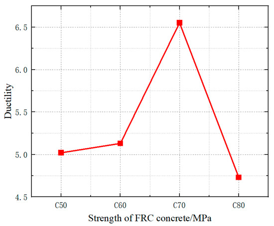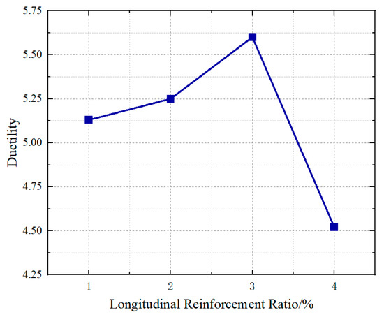 Figure 30. Ductility plots of specimens under different longitudinal reinforcement ratios.