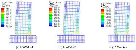 Figure 14. Reinforcement cage S, von Mises cloud plot of the FSW-G series shear wall.