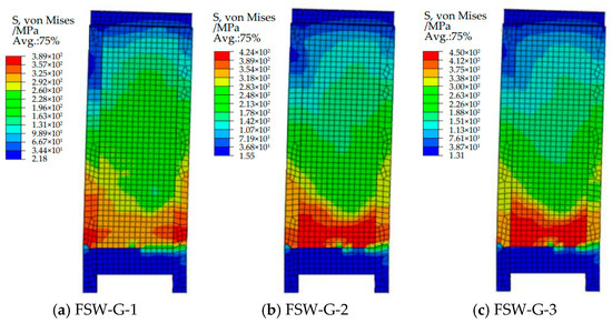Figure 15. Steel plate and profile S, von Mises cloud plot of the FSW-G series shear wall.