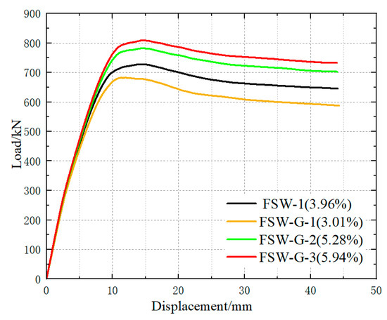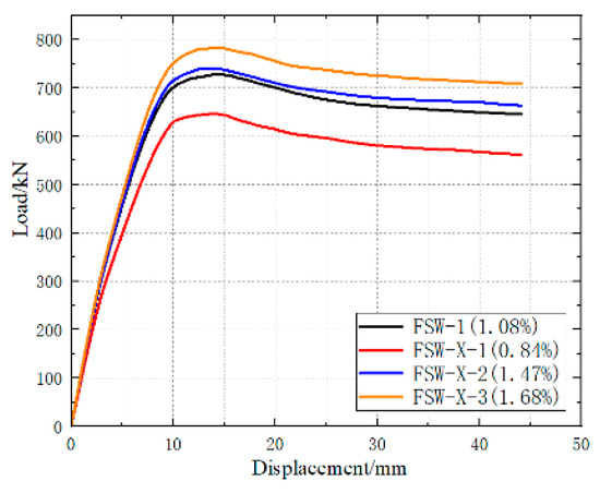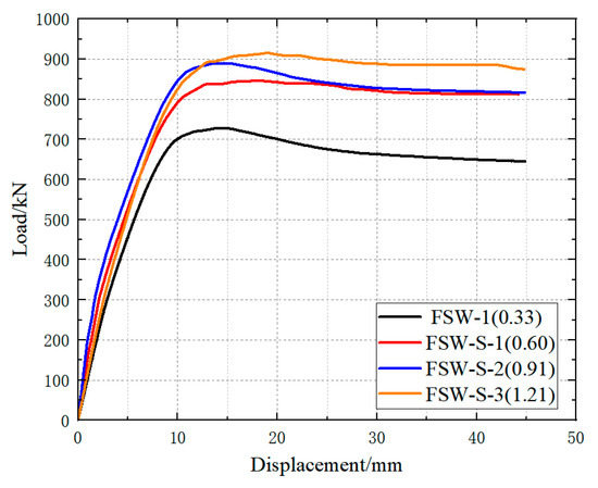 Figure 16. Load–displacement curves for specimens with different steel ratio of central steel plate.