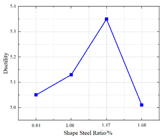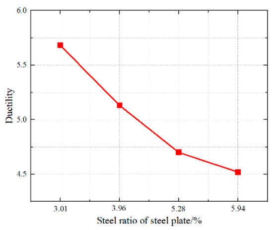Figure 18. Ductility curves under different different steel ratio of central steel plate.