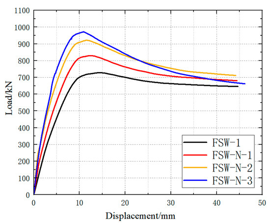 Figure 34. Load–displacement curve under different axial compression ratios.