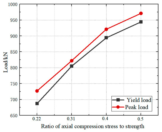 Figure 35. Load diagram of characteristic points under different axial compression ratios.