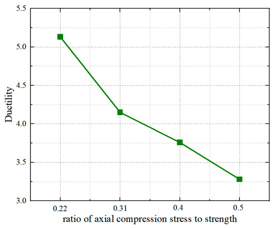 Figure 36. Ductility plots of specimens under different axial compression ratios.