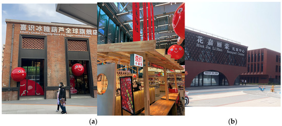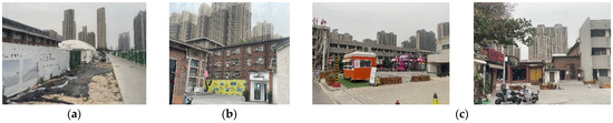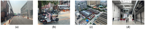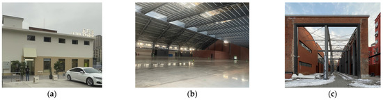 Based on the on-site investigation, it was observed that the three parks contain varying degrees of historical and cultural display areas. Beyond preserving existing buildings and their environments, Miansan Park showcases its historical narrative through graphical representations on the facades of buildings lining the park’s main street. Furthermore, both Dahua Park and Shimeiji Park have established dedicated exhibition halls for industrial culture, namely, the Dahua Exhibition Hall and the Shijiazhuang Industrial Museum, respectively, as illustrated in Figure 8. Given the relatively recent establishment of these three parks, their infrastructure is notably modern and well-maintained. However, the limited practicality and comprehensiveness of the parks may be attributed to the configuration of internal spaces and functional zones, ultimately leading to low practicability, whereby the condition for enterprises or merchants to join is not ideal.