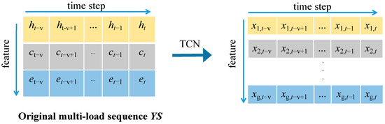 The data extraction process is shown in Figure 2. The original multivariate load sequence YS becomes a new multivariate coupled load sequence X with g rows and v columns after being extracted by TCN, where g represents the output channels of TCN and v represents the time steps.