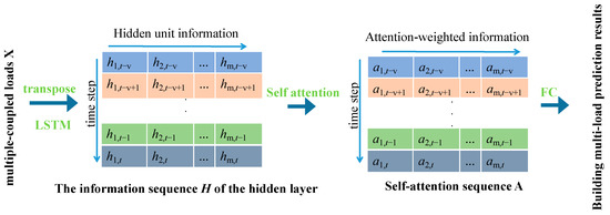 Man et al. [18] applied the LSTM to the prediction of building electrical loads. By inputting the load data of the previous 24 days, it could predict the load data for the next day. The results showed that the prediction performance of the LSTM model was better than that of the support vector machine. Zhang et al. [19] utilized the LSTM neural network to conduct research on the short-term heat load of a heating station for the next day by inputting meteorological data and historical heat load data, proving that the LSTM was suitable for being applied to the heat load forecasting tasks of buildings. Cordeiro-Costas et al. [20] summarized the load forecasting methods in recent years and compared them, including the random forest (RF), support vector regression (SVR), extreme gradient boosting (XGBoost), multi-layer perceptron (MLP), LSTM, and time convolutional network (CNN). The results indicated that the LSTM had the optimal prediction performance. However, cold, heat, and electrical loads themselves have various complex time-varying patterns, and it is difficult to accurately capture such highly complex time-dependent relationships merely relying on the LSTM.