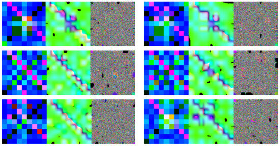 Images in different color spaces (every three images represent a network traffic, from left to right representing it in MTF, HSV, and LAB color spaces, respectively).