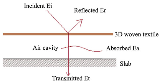 The Johnson-Champoux-Allard (JCA) model, the most popular and straightforward model for sound propagation across a large frequency range, is used for the theoretical calculation of porous sound absorption materials. This JCA model includes five fundamental parameters that are needed: porosity (), tortuosity (), airflow resistivity (), thermal characteristic length (), and viscous characteristic length (). Typically, sound absorption in porous materials is high as being dependent on pore sizes [28]. 3D woven textile materials achieve superior broadband sound absorption by means of a multi-layered and spacer, interwoven textile structure. A layer of 3D woven textile with high tortuosity can be designed to dissipate high-frequency sound at its surface, while the porosity and resistivity of the airflow are individually tailored within the core to absorb energy from lower frequencies.