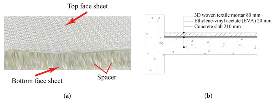 Structure layers (a) and three types reinforced mortar of 3D woven textile for field measurement (b).