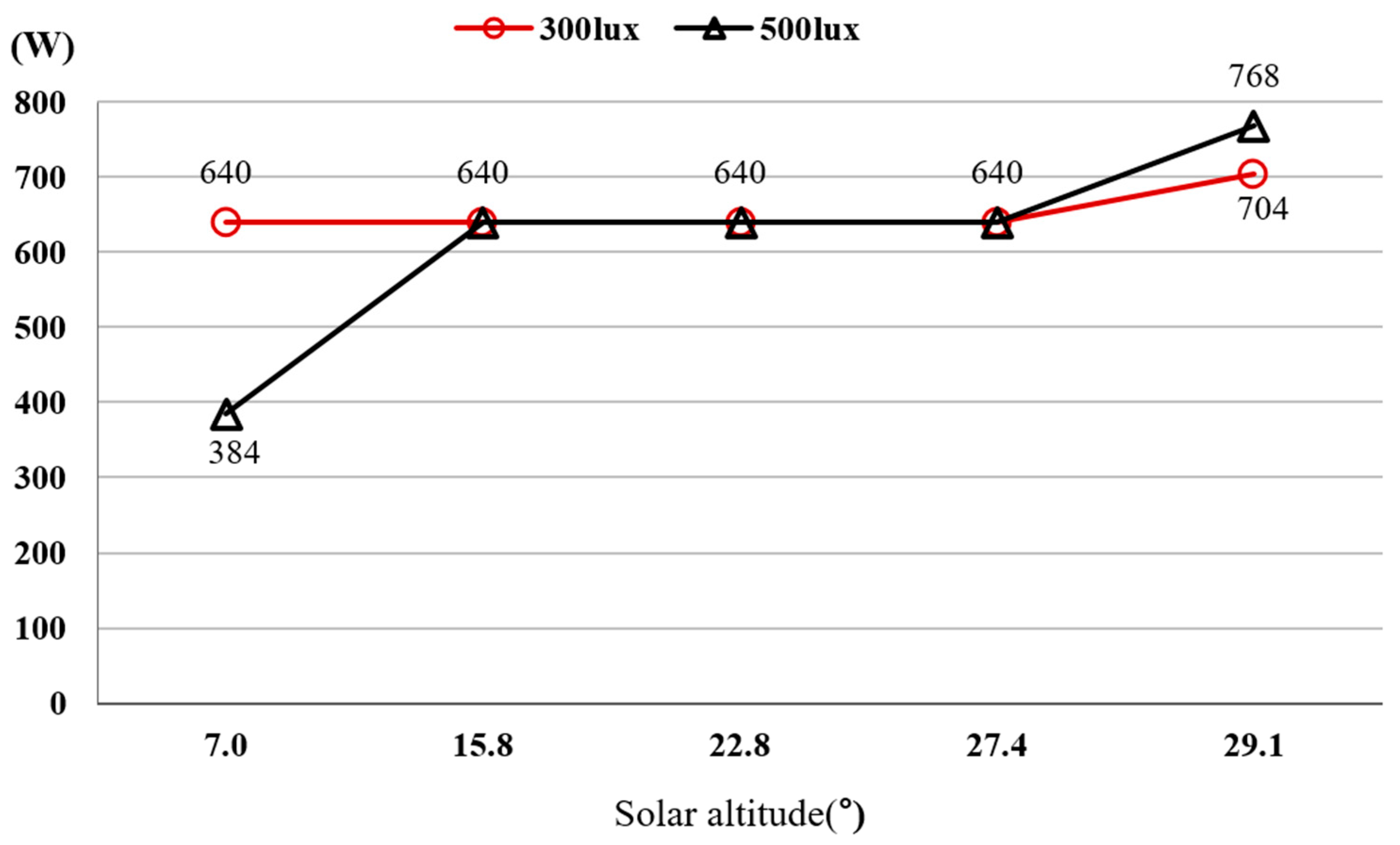 Difference in power consumption before/after sunlight infringement (W)640640640640704