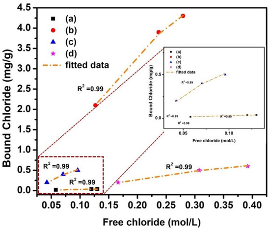 - Saillio, M.; Baroghel-Bouny, V.; Barberon, F. Chloride binding in sound and carbonated cementitious materials with various types of binder. Constr. Build. Mater. 2014, 68, 82–91. [Google Scholar] [CrossRef]