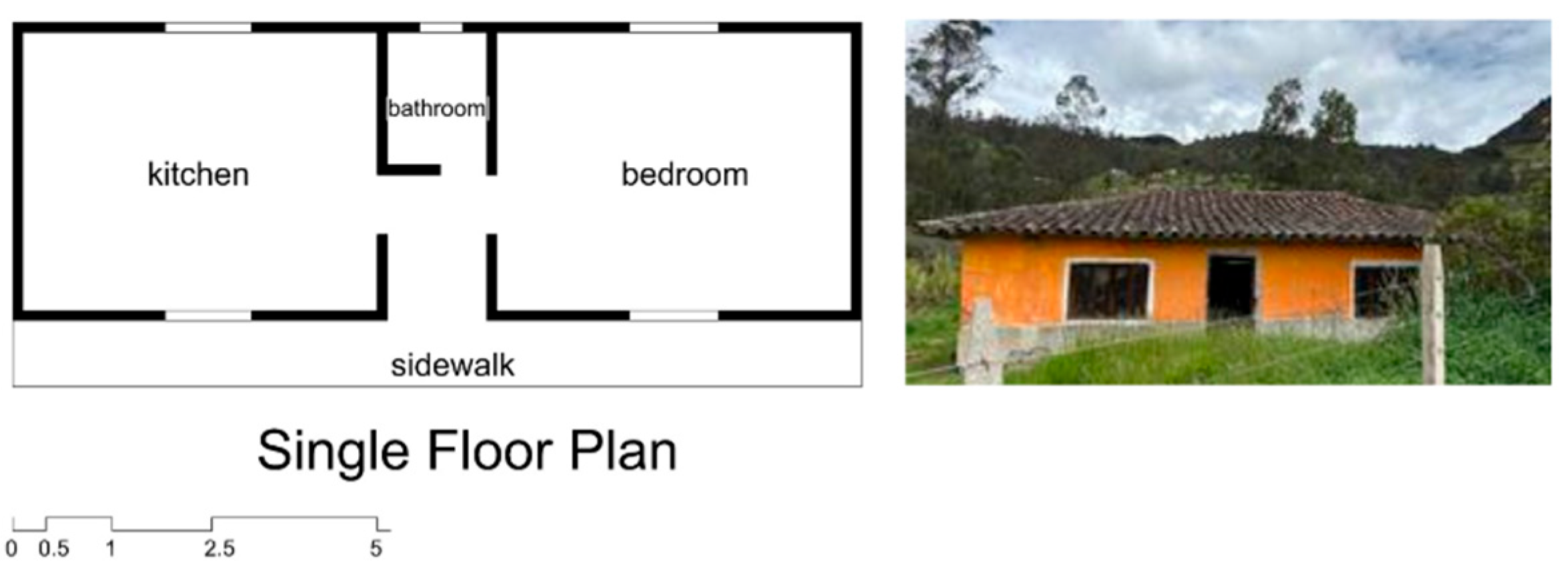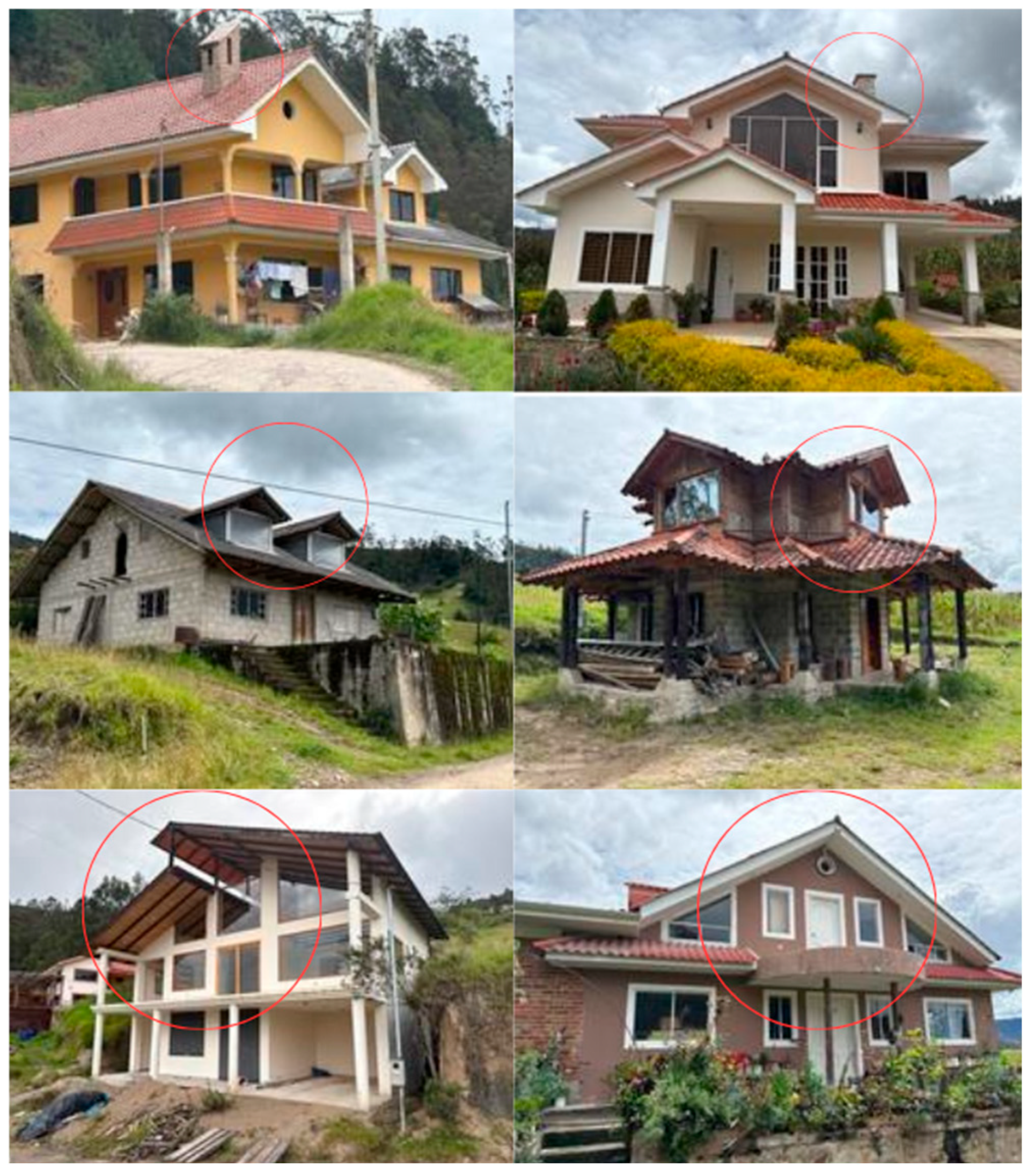 - Vacacela, N. Prototipo de vivienda rural social, para la comunidad de Oñacapac del Cantón Saraguro. Master’s Thesis, Universidad Técnica Particular de Loja, Loja, Ecuador, 2021. Available online: https://dspace.utpl.edu.ec/handle/20.500.11962/29534?locale=es (accessed on 23 September 2025).