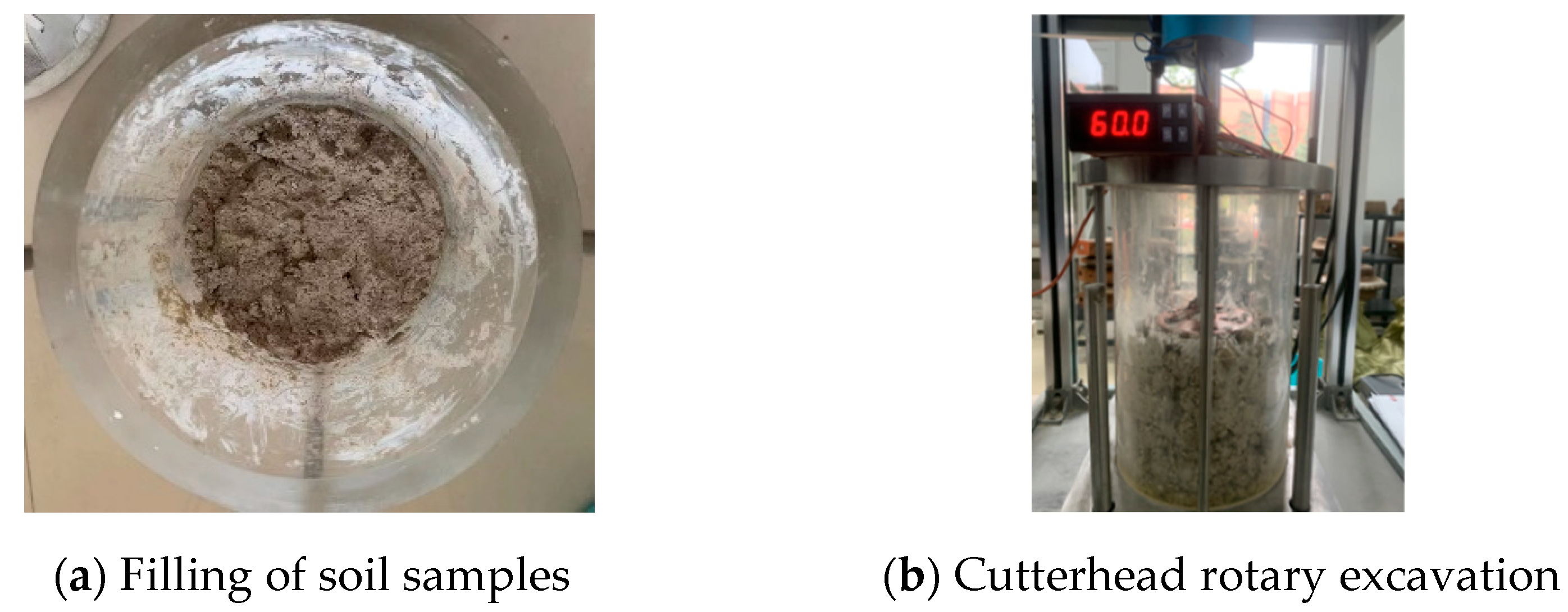 17] investigated the mechanism of cutter plate cementation and the formation of mud cake through an indoor mixing test and cutter plate digging test. The results showed that the viscosity of the soil samples was positively correlated with the mud consistency and, when the viscosity of the mud increased, it enabled the adhesion of coarse-grained soils, but it also increased the risk of adhesion at the interface between the soil and the shield. For the effect of temperature on clay adhesion, Tao (2020) [