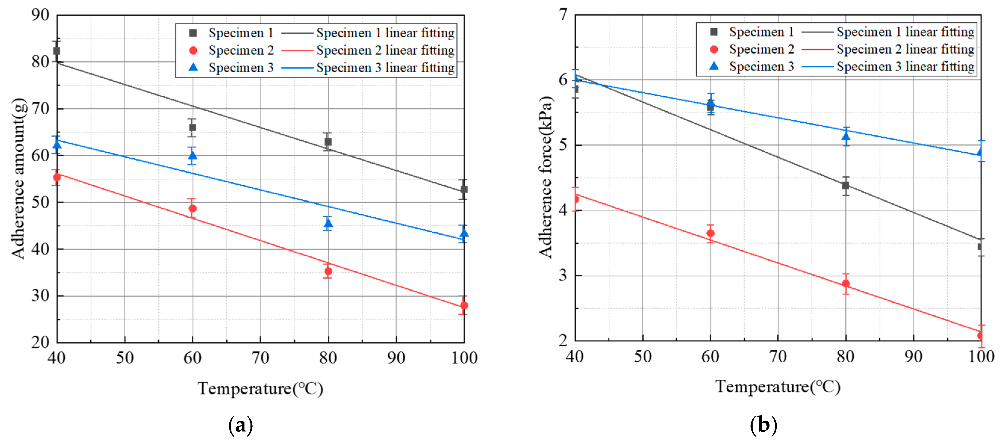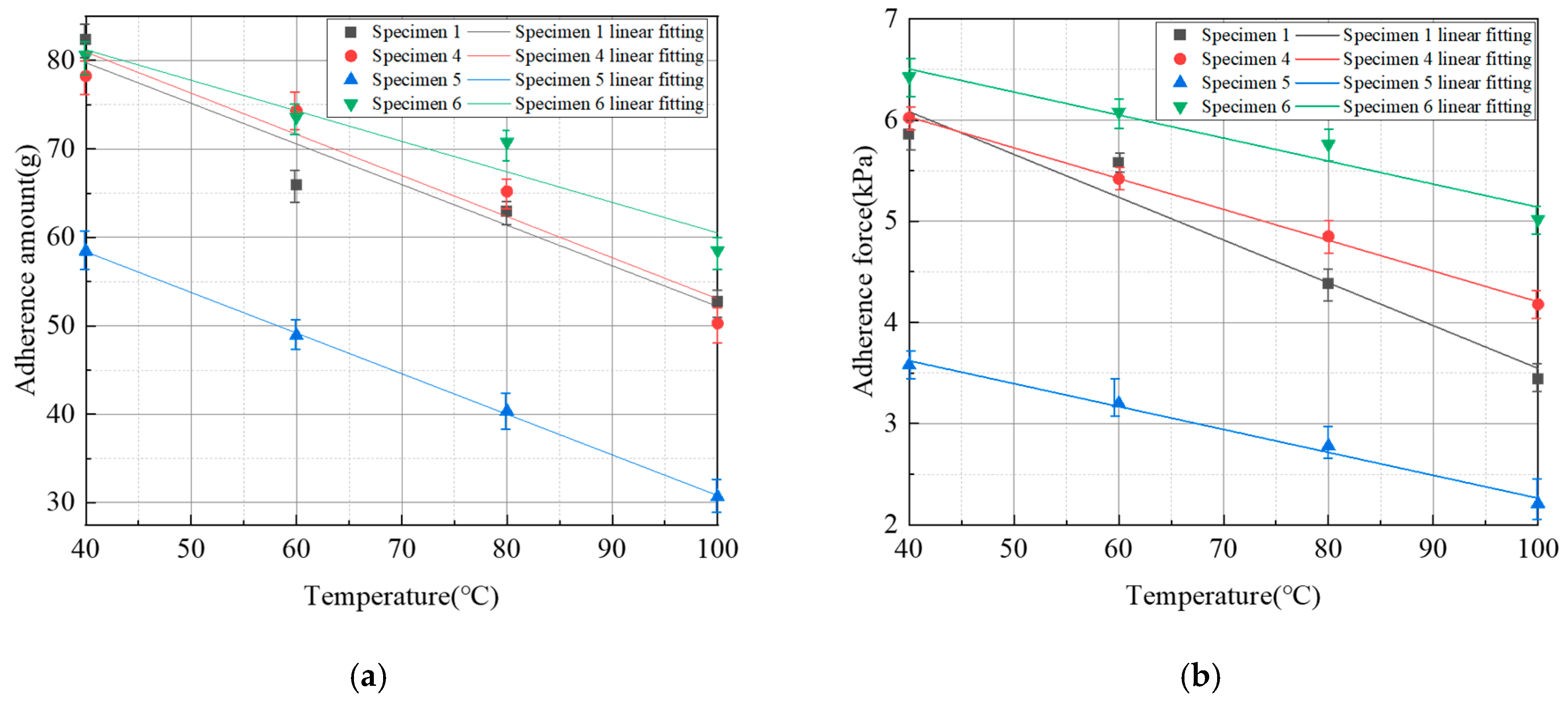 3.1. Effect of Temperature on the Cutter Adhesion Test