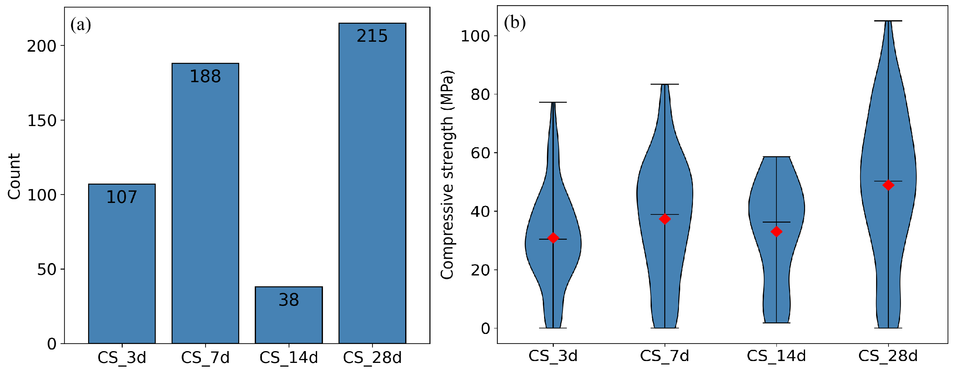 - Multi-age compressive strength analysis. We provide systematic insights into 3-day, 7-day, 14-day, and 28-day compressive strengths of one-part geopolymers, enabling a more comprehensive understanding of their mechanical development.