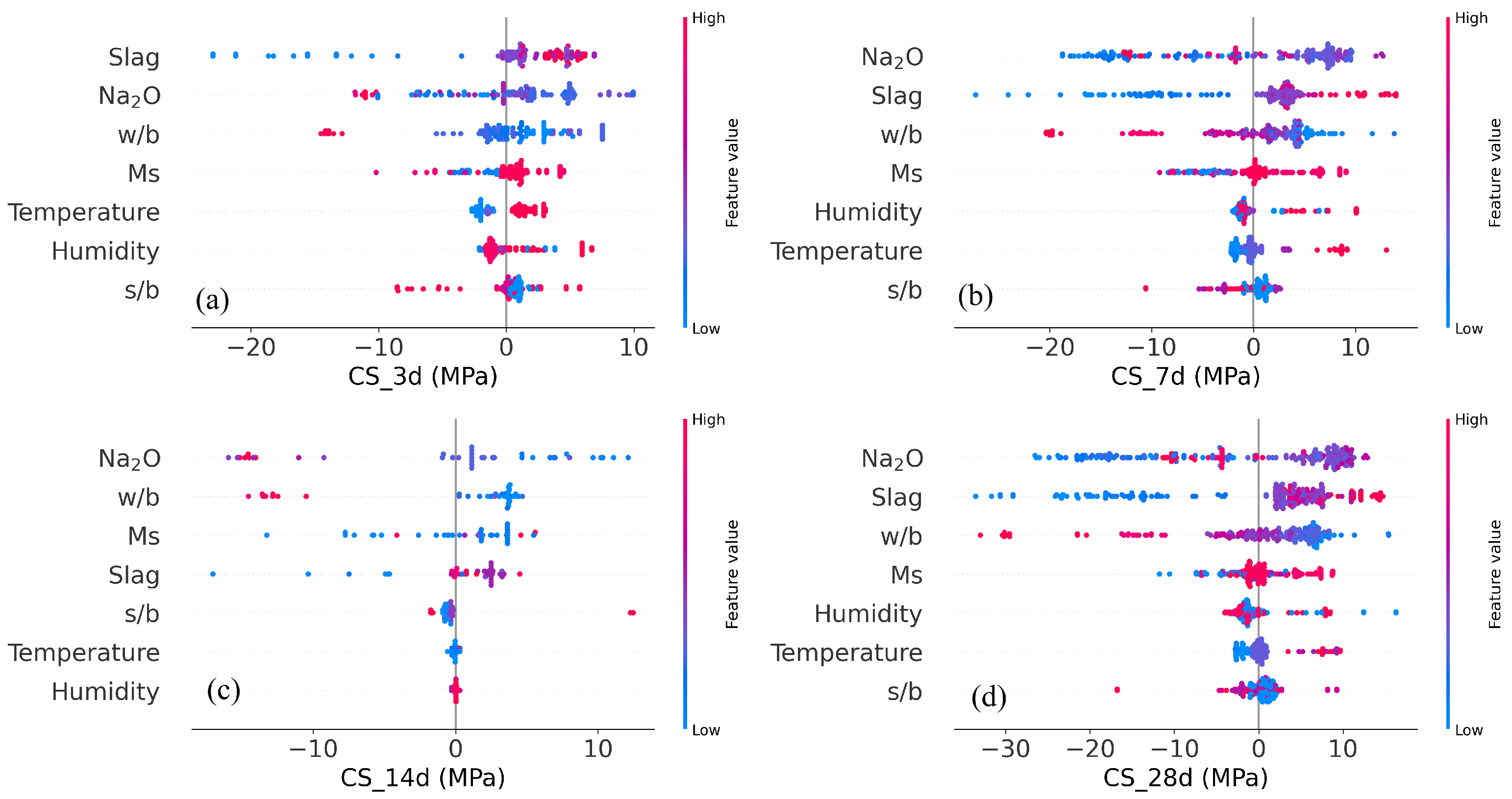 - Shah, S.F.A.; Chen, B.; Zahid, M.; Ahmad, M.R. Compressive strength prediction of one-part alkali activated material enabled by interpretable machine learning. Constr. Build. Mater. 2022, 360, 129534. [Google Scholar] [CrossRef]