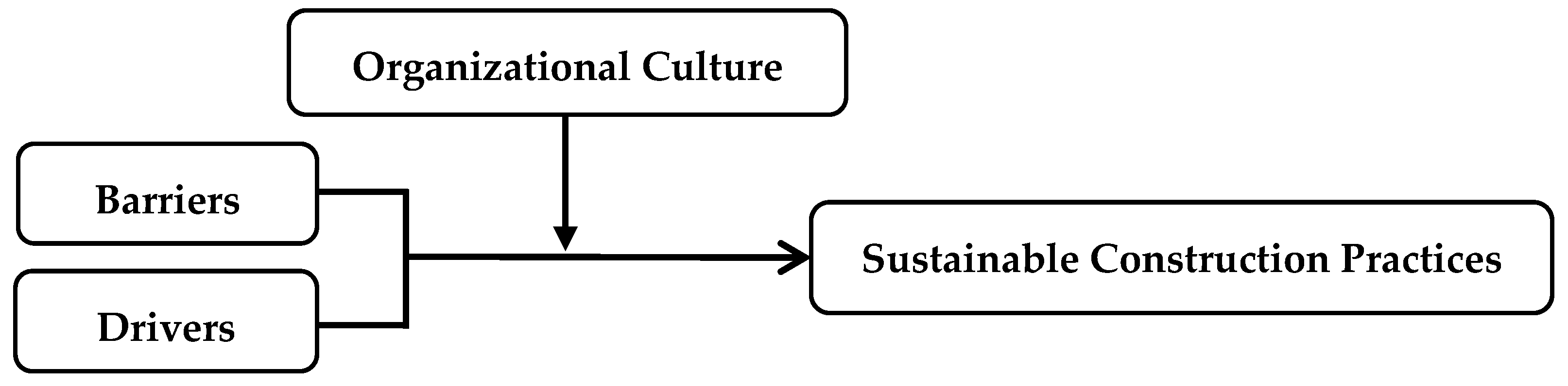 • RQ3: How does the presence of organizational culture modify the relationship between drivers and sustainable construction practices?