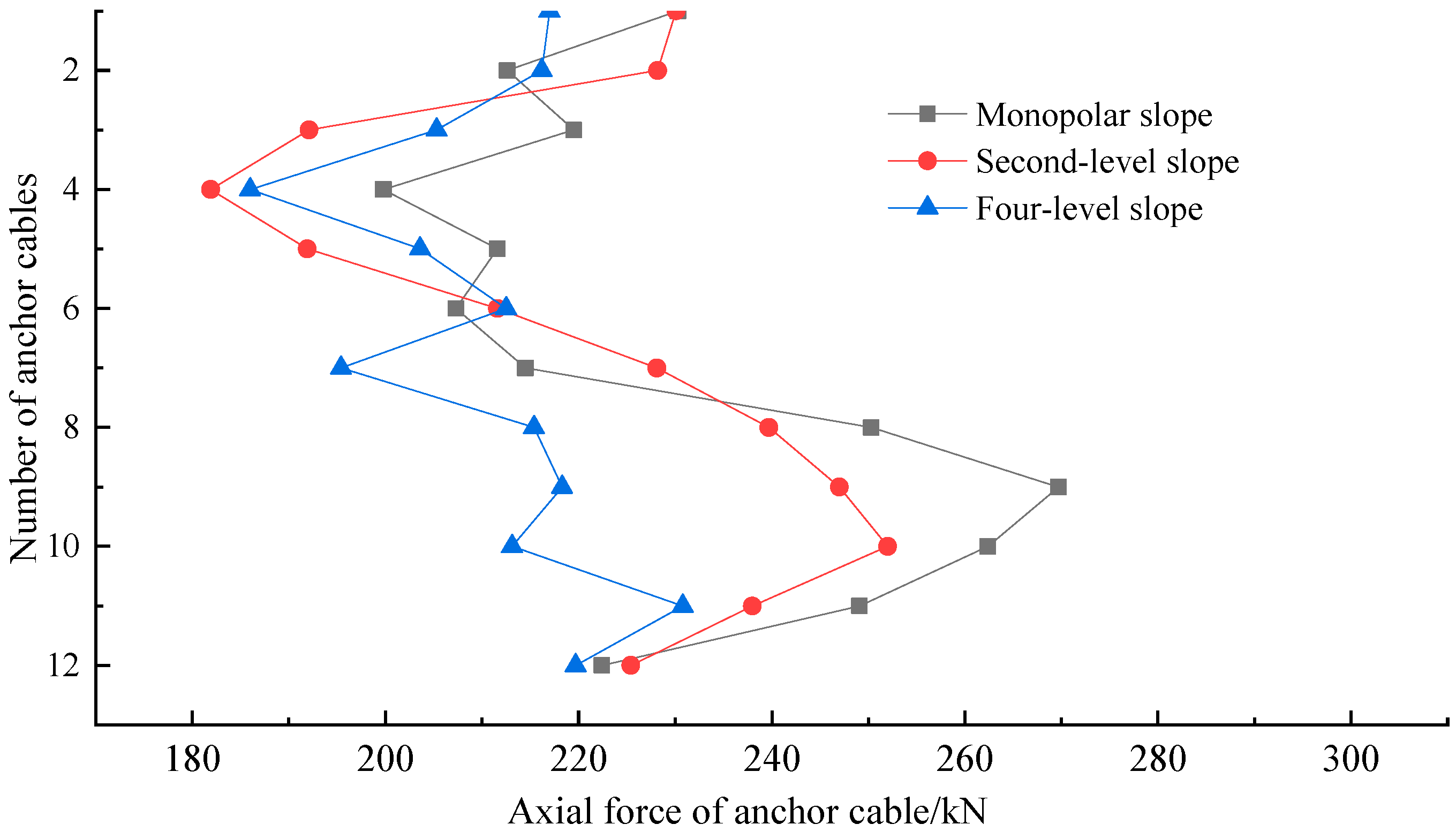 - The effect of different platform widths on the axial force of the anchor cable under fourth-level slope