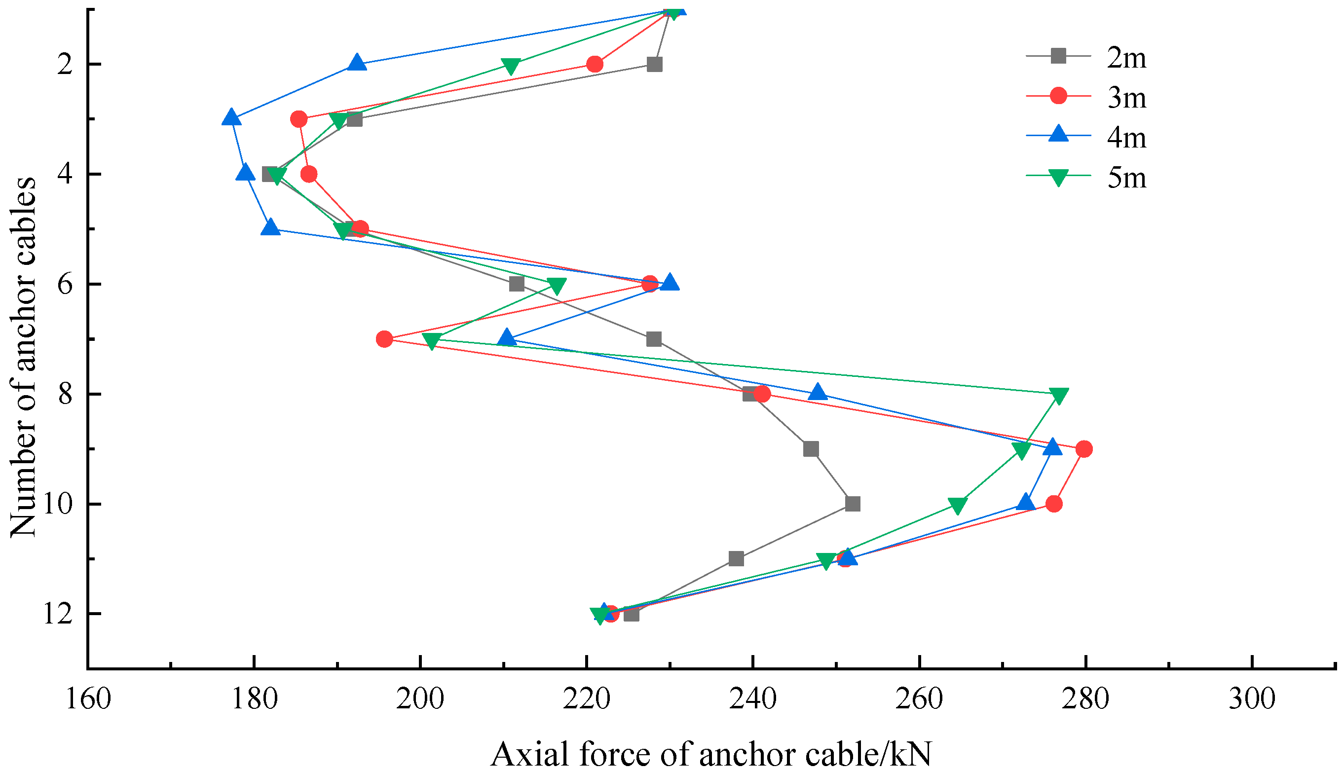 3.2.2. Investigation of Anchor Cable Axial Forces