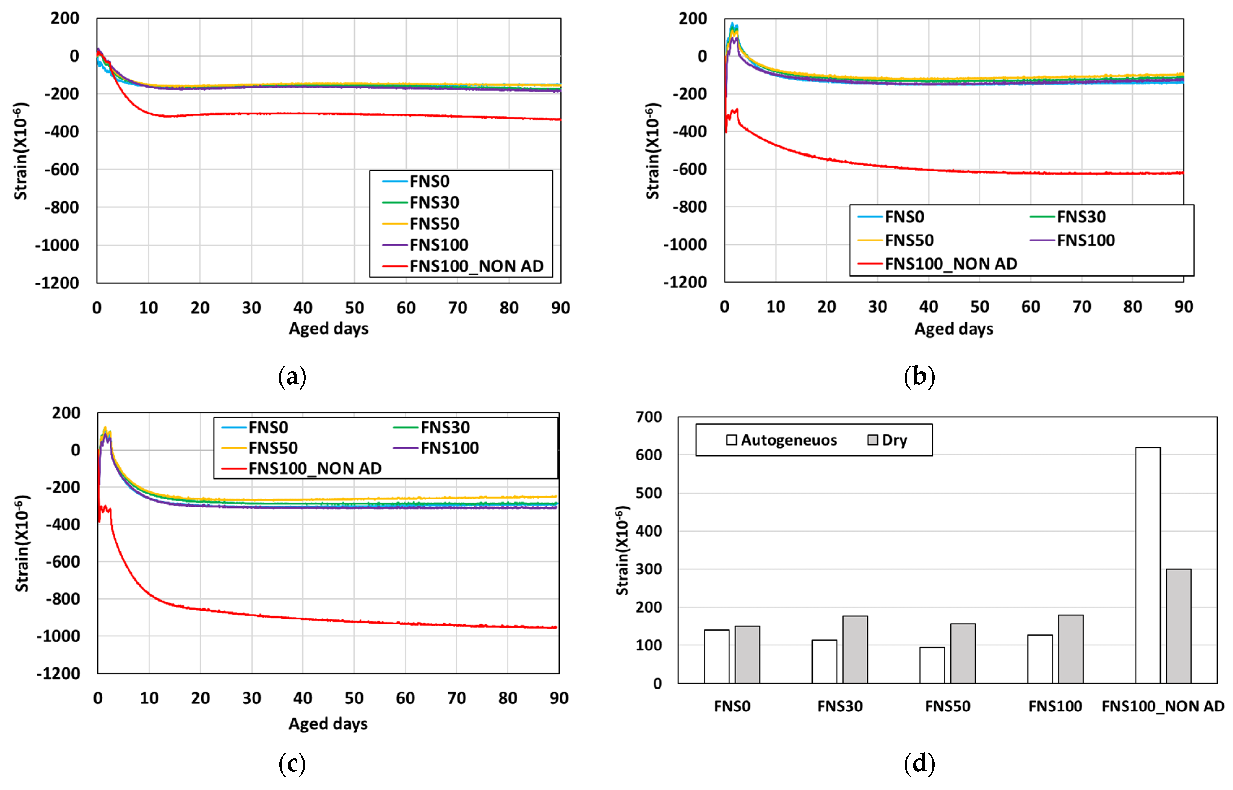 - Yang, Y.; Sato, R.; Kawai, K. Autogenous shrinkage of high-strength concrete containing silica fume under drying at early ages. Cem. Concr. Res. 2005, 35, 449–456. [Google Scholar] [CrossRef]