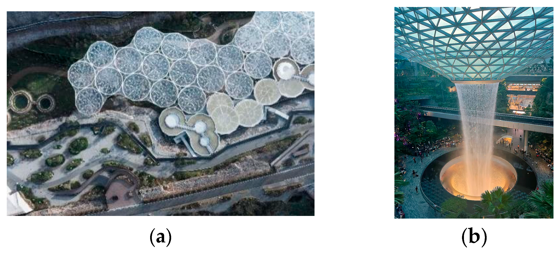 Figure 1. Application of acrylic in structural engineering. (a) Nanjing Future Garden; (b) Jewel at Changi Airport [11].