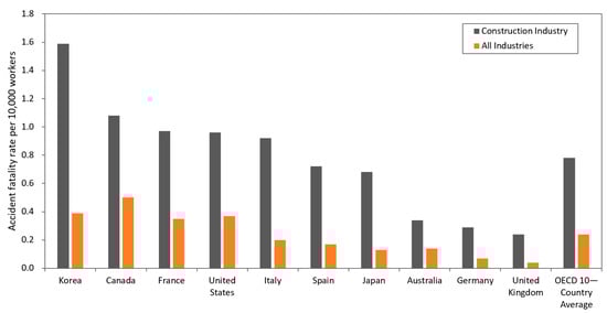 Comparison of accident fatality rates per 10,000 workers in the construction industry [].