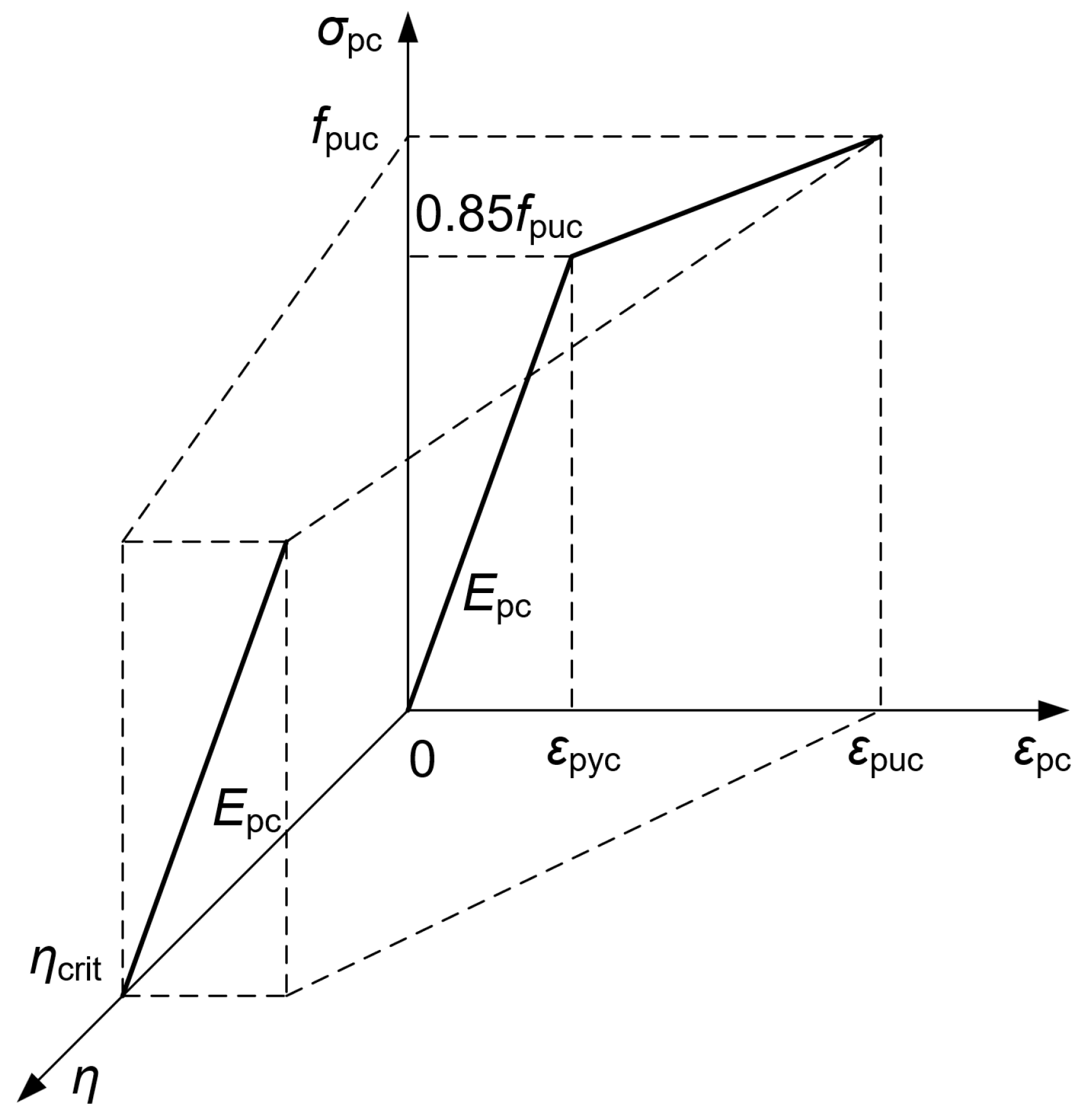 σ p c = { E p c ε p c ε p c ε p y c 0.85 f p u c + 0.15 f p u c ε p u c ε p y c ( ε p c ε p y c ) ε p y c < ε p c ( η < η crit )