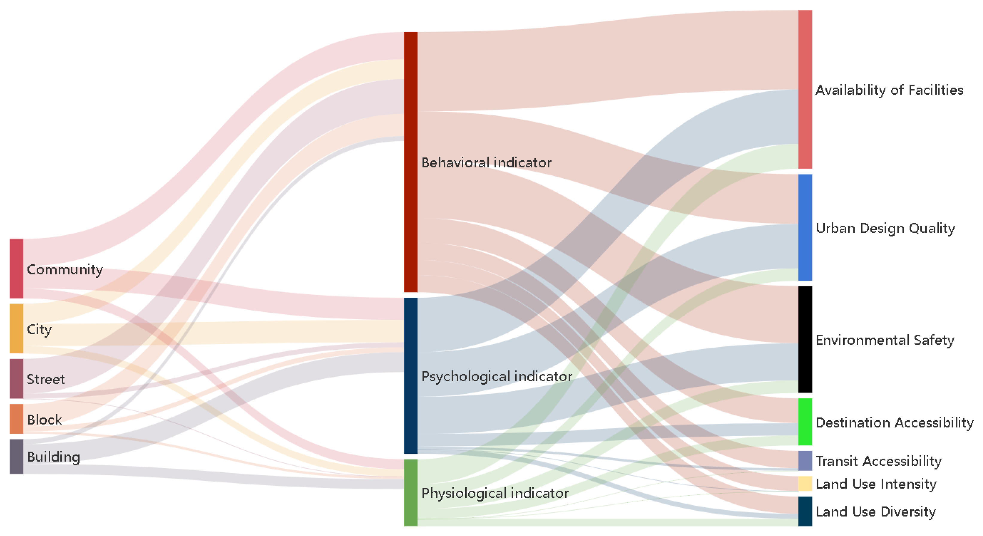 Behavioral | Walking frequency, cycling time, sedentary time, path use frequency, physical activity participation frequency, number of pedestrians, etc. | The individual’s clear activities and path choices in the built environment reflect the actual response and interaction mode of people to the environment. |